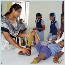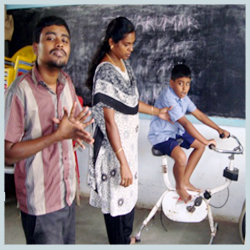 Mrs.Radha physio therapist gives physio therapy daily and 7 to 10 children receives physio therapy regularly..