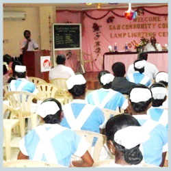 Mrs.Eswari (VP) and Dr.Neela Ambujan given us token of Advice tocommunity college students. Dr.Archana Ambujan lighting the candle for our students. College Tutors also participated in the program.